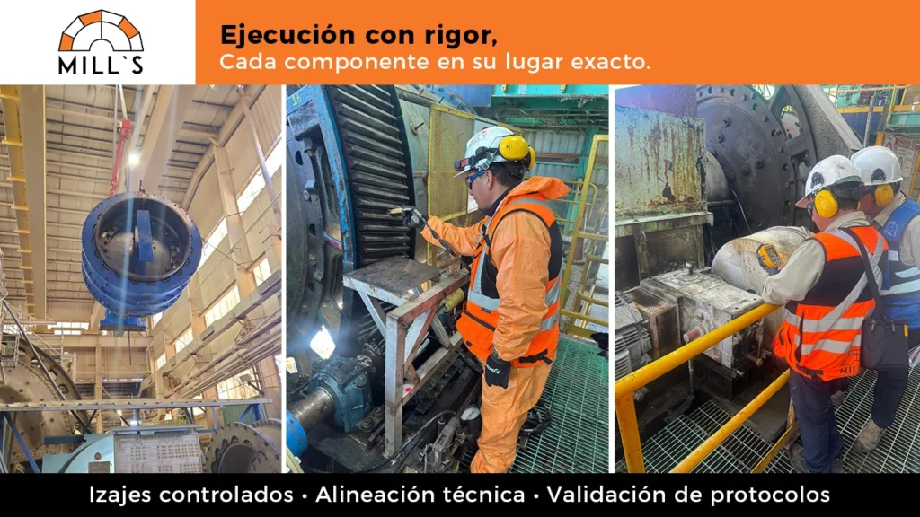 El enfoque de MILL’S no solo busca cumplir con un estándar técnico, apunta a entregar confiabilidad operativa, reducir tiempos de detención y establecer bases sólidas para la vida útil del molino. La combinación de planificación, precisión y seguridad es lo que nos permite ejecutar montajes que aportan continuidad y eficiencia en faenas mineras de alta exigencia.